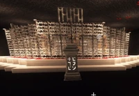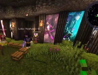 Further below is the under construction, Ultimate Furry Club, built to hold pvp battles. Aypierre has plans to further expand the build to have bleachers where spectators can sit and plans to work with the create mod to be able to raise and lower the cage of the fighting ring. Lining the walls of this area are images of "furry" pro-wrestlers.