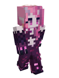Ironmouse is a demoness with light skin. She has long light pink hair with purple strands that she wears in two high pigtails. She has short bangs with a purple streak on the left side. Her left eye is red, her and right eye is purple. She has two white horns and a couple of red hairclips at their bases. Her ears are pointed and have a couple of bat wings above them. In her right ear, she has a gray and red earring. Behind her hair, she has a pointy demon tail. It's length is purple and adorned with a chain. It's point is half black, half light pink.